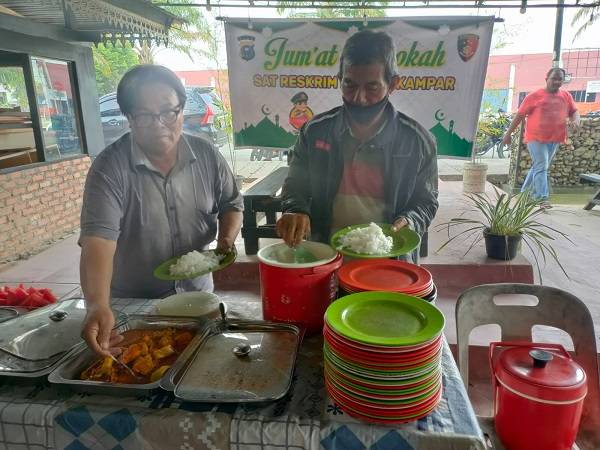 Momen yang Ditunggu Masyarakat Bangkinang di Hari Jumat, Makan Siang Gratis di Kafe TSJ yang Disediakan Rutin Satreskrim Polres Kampar
