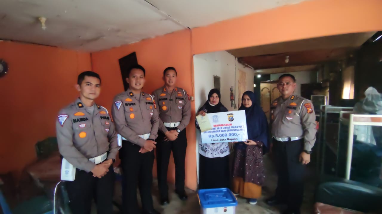 Momentum Hari Guru Nasional, Ditlantas Polda Riau Berikan Semangat Kepada Guru Honorer