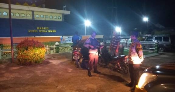 Pastikan Kondusif Selama Pelaksanaan Salat Tarawih, Polsek Minas Patroli Pengamanan Masjid