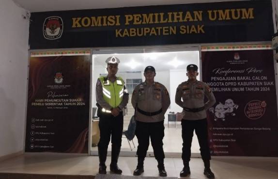 Patroli Rutin Oleh Tim Satgas Kamseltibcar Lantas Polres Siak Ke Kantor KPU dan Bawaslu