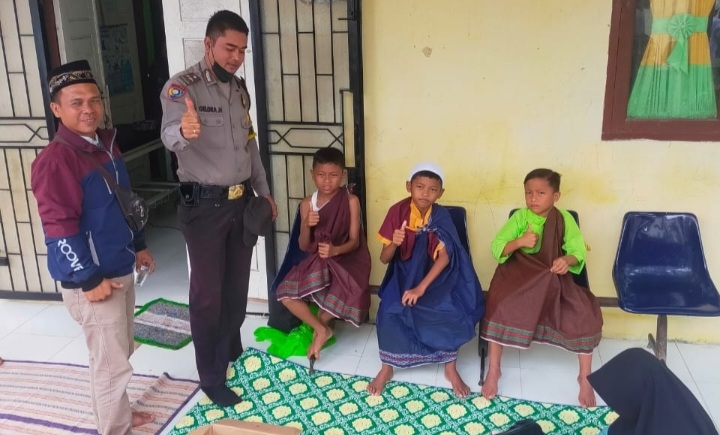 Peduli Dengan Masyarakat, Bhabinkamtibmas Polsek Tualang Desa Maredan Hadiri Sunatan Massal