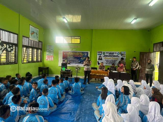 DUMAI, datariau.com - Jajaran Satuan Lalulintas (Satlantas) Polres Dumai menyambangi SMPN 20 Dumai yang beralamat di Kecamatan Medang Kampai Kota Dumai, Selasa (11/7/2023).