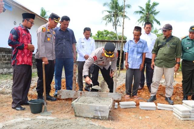 INHU, datariau.com - Kepala Kepolisian Resor (Kapolres) Indragiri Hulu (Inhu), Polda Riau, AKBP Dody Wirawijaya SIK kembali meletakan batu pertama program Bedah Rumah Presisi Indragiri Hulu (Bersih) ke-14 di Kecamatan Sungai (Sei) Lala, Kabupaten Inhu.
