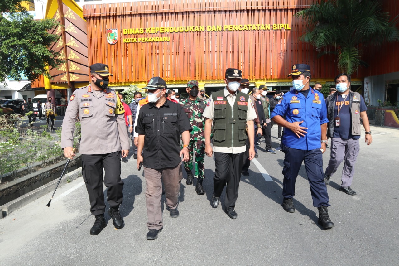 Pemyemprotan Disinfektan Massal Dalam Rangka Hari Jadi Ke-237 Kota Pekanbaru, Kapolresta Ajak Masyarakat Tetap Laksanakan 5M