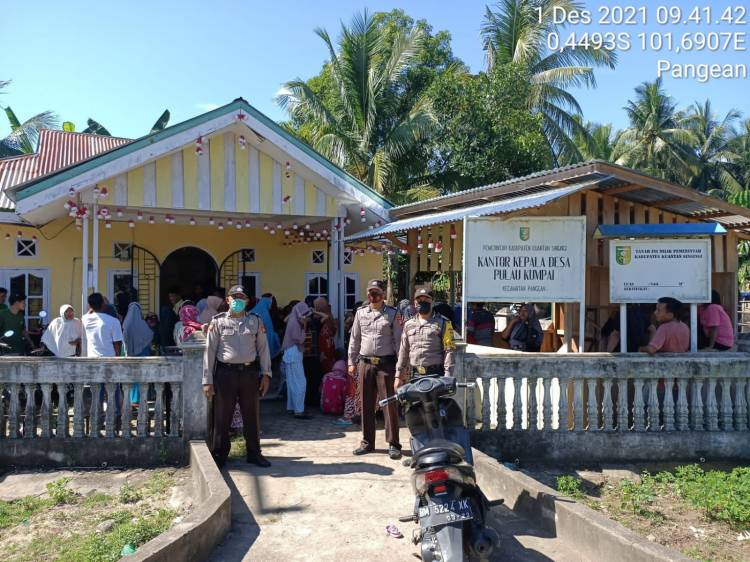 Polsek Pangean melaksanakan Pengawalan Kegiatan Vaksinasi yang berlokasi di Kantor Desa Rawang Binjai dan di Puskesmas Pangean.