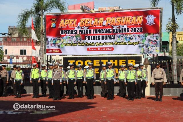 “Pelaksanaan Operasi Patuh 2023 dilaksanakan selama 14 hari dimulai dari tanggal 10 Juli 2023 sampai dengan 23 Juli 2023 dalam bentuk kegiatan preemtif, preventif dan didukung pola penegakan hukum lantas secara elektronik,” jelas Kapolres Dumai membacakan Amanat Kapolda Riau.
