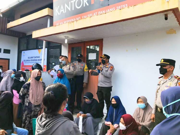 Penyaluran BSS di Kantor Pos Selatpanjang, Kapolres Imbau Vaksinasi dan Prokes