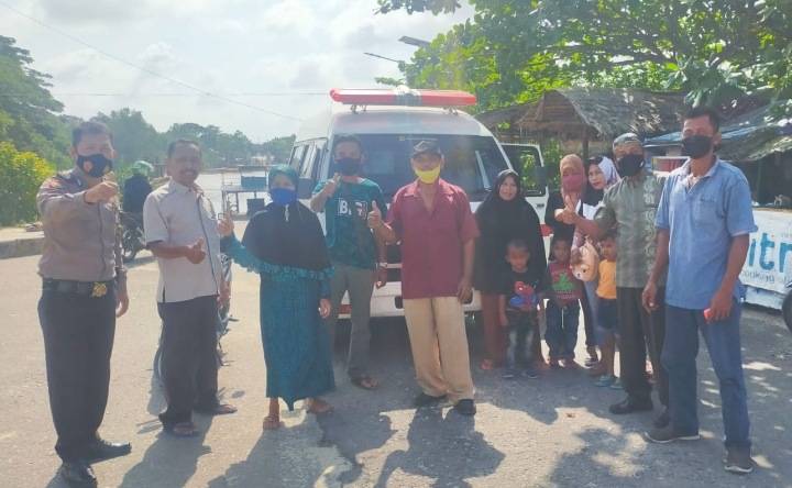 Percepatan Vaksinasi, Bripka Dian Prastiadi Jemput Warga Seberang Sungai Siak Pinang Sebatang