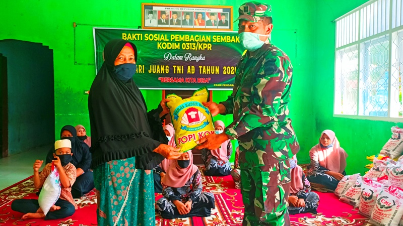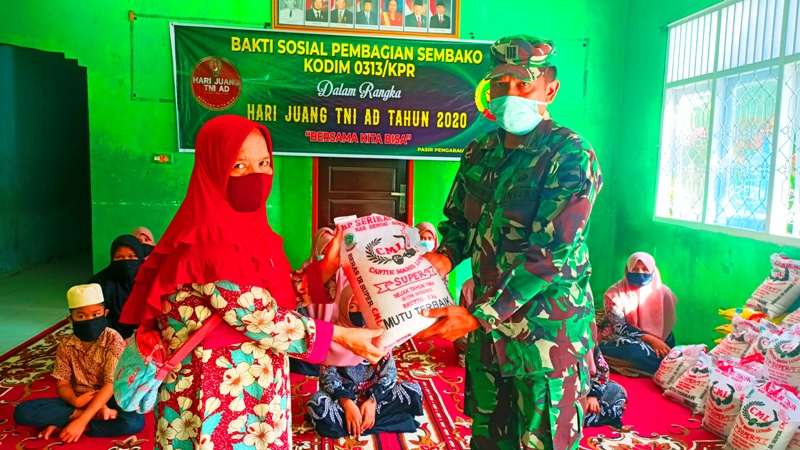 Peringati Hari Juang TNI AD, Kodim 0313/KPR Melalui Koramil 02 Rambah Gelar Bakti Sosial di Panti Asuhan Budi Mulia