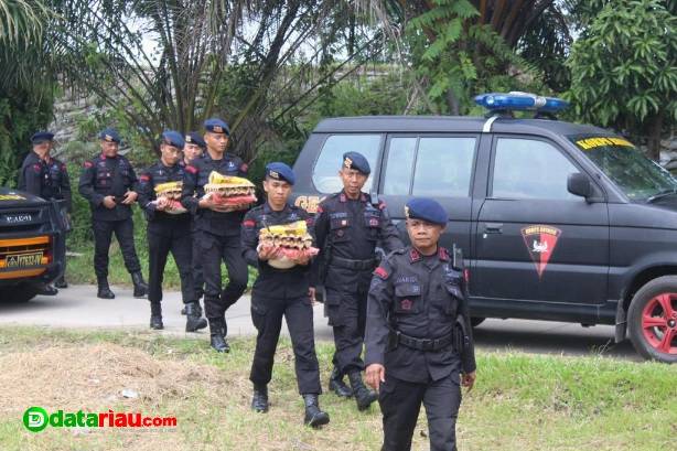 Personel Gegana Brimob Polda Riau Berbagi Paket Sembako di Meranti Pandak Pekanbaru