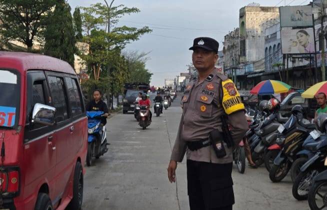 Polsek Bagan Sinembah Amankan Pasar Tumpah Ramadhan di Bagan Batu, Lalu Lintas Terjaga Kondusif