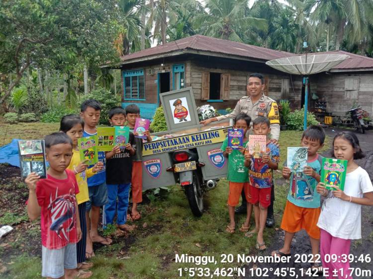 Personel Polsek Rangsang Sediakan Pustaka Keliling Untuk Anak-anak di Desa Sendaur Kepulauan Meranti
