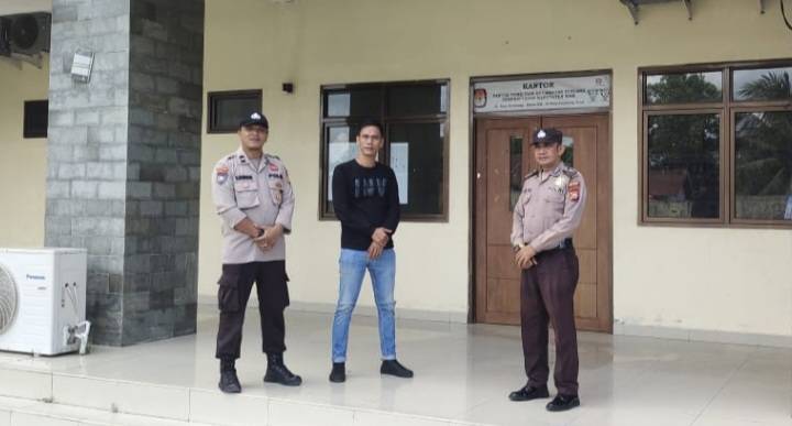 Personil Polsek Tualang di depan Sekertariat PPK Tualang.