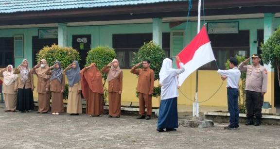 Personil Polsek Tualang Giat Program Police Goes To School di SMP Plus Muhammadiyah