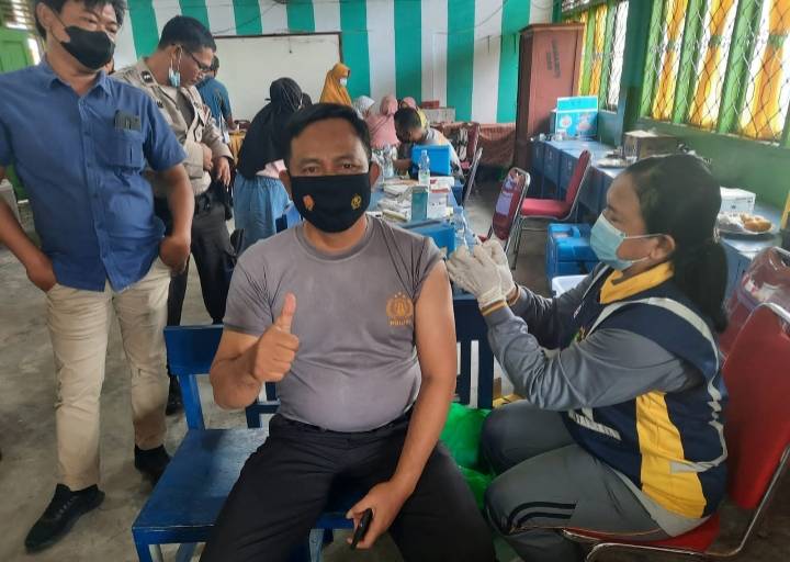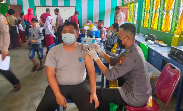 Personil Polsek Tualang Melaksanakan Vaksinasi Jenis Booster