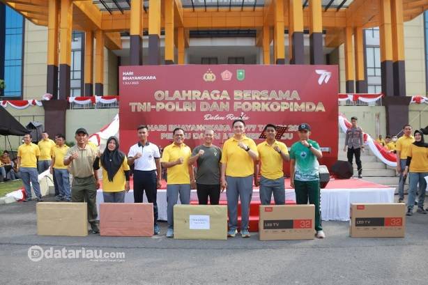 PEKANBARU, datariau.com - Dalam rangka hari Bhayangkara ke-77, Polda Riau bersama Gubernur Riau serta Fokopimda menggelar olahraga bersama di lapangan Apel Mapolda Riau, Jalan Patimura, Pekanbaru, Jumat (23/6/2023) pagi, sekitar pukul 07.00 Wib.