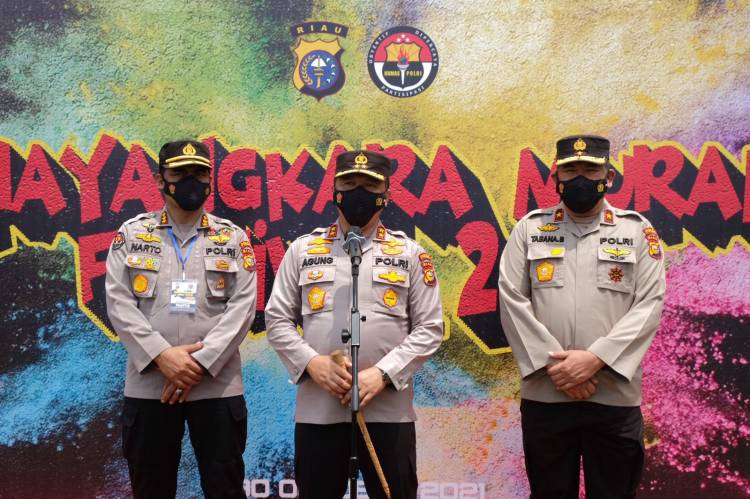 Kapolda Riau Irjen Agung Setya Imam Effendi didampingi wakilnya dan Kabid Humas mengungkapkan, festival Mural 2021 ini merupakan salah satu misi Polri untuk menjadi lebih demokratis, yang juga harus mampu mendengar suara dan aspirasi masyarakat, termasuk pula kritikan. Diyakinkannya, bahwa kepolisian tidak anti kritik, apalagi jika itu dituangkan dalam bentuk karya seni.