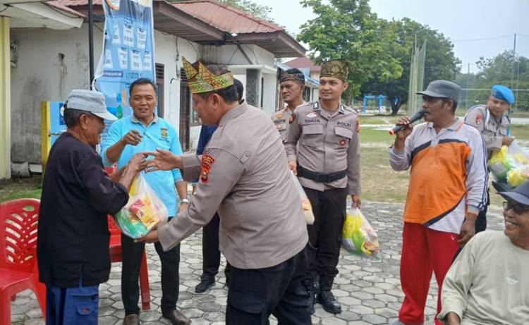 Polisi di Kampar Berbagi Rezeki dengan Masyarakat Miskin di Desa Bukit Keratai Rumbio Jaya