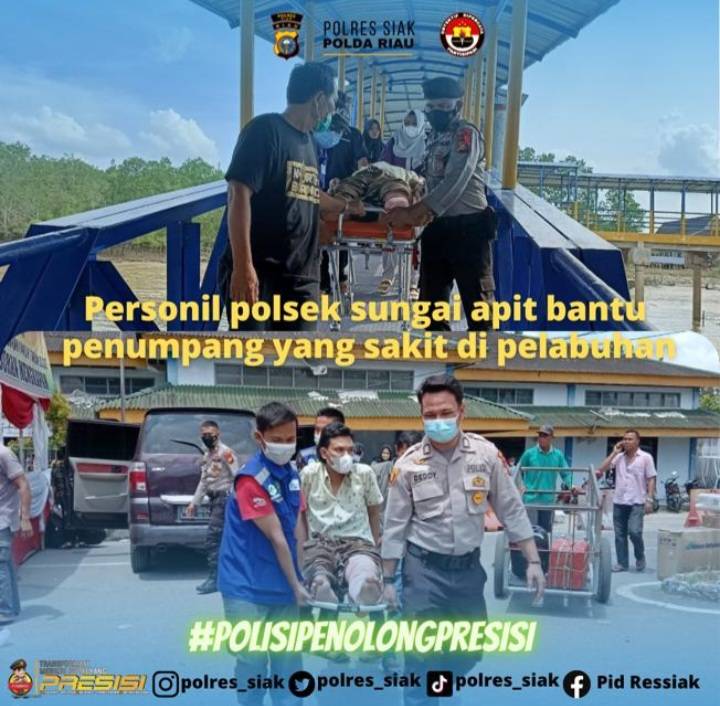 Personil Polsek Sei Apit membantu penumpang di Pelabuhan Tanjung Buton.