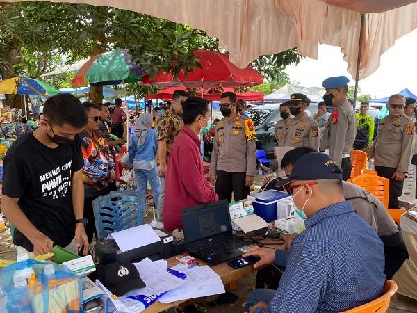 Polres Inhu Manfaatkan Lokasi Keramaian Untuk Laksanakan Vaksinasi Covid-19