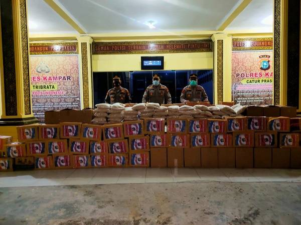Bantuan Sosial yang disiapkan untuk dibagikan kepada masyarakat saat pelaksanaan Patroli Skala Besar ini sebanyak 150 paket, setiap paket terdiri dari beras sebanyak 5 Kg, Minyak goreng kemasan 2 kg, Mie Instan 10 Bungkus, Gula pasir 1 Kg, Sirup 1 botol dan Susu Kental 1 kaleng.