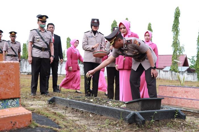 Polres Kampar Gelar Upacara Ziarah Makam Pahlawan Dalam Rangka Hari Bhayangkara Ke-77