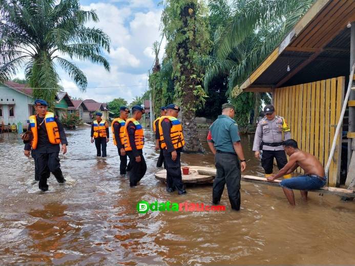 Polres Rohil Cek Debit Air dan Kunjungi Ratusan Warga Terdampak Banjir di Kecamatan Rantau Kopar