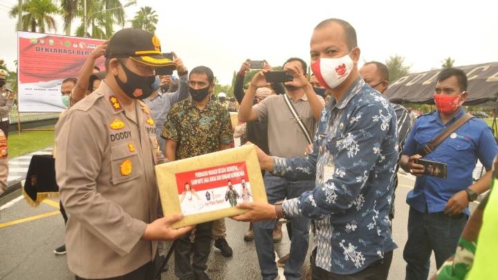 Polres Siak Gelar Gerakan Seribu Masker Serentak dan Kampanye Jaga Jarak Serta Hindari Kerumunan