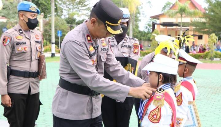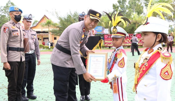 Waka Polres Siak Kompol Angga Wahyu Prihantoro lantik dan beri penghargaan kepada Polisi Cilik Angkatan IV.