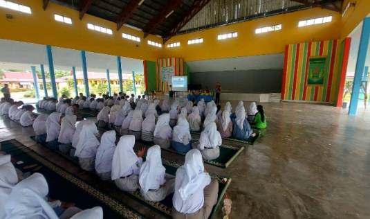 Sosialisasi bahaya narkoba dan pilkada 2024 di SMAN 1 Mempura oleh Polres Siak.