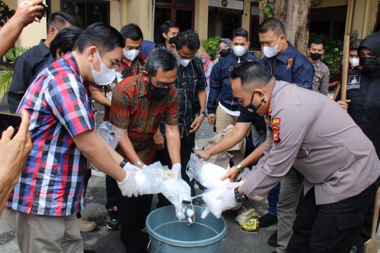 Polresta Pekanbaru Musnahkan Barang Bukti Sabu dan Serbuk Ekstasi