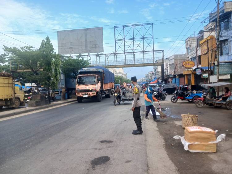 Polsek Bagan Sinembah Laksanakan Strong Point Pagi di Jalan Jendral Sudirman Bagan Batu