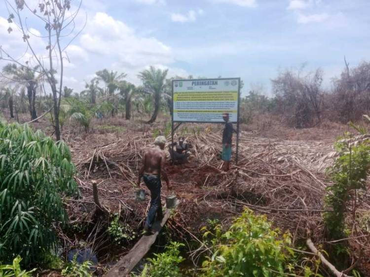 Polsek Bangko Pemasangan Plang Larangan di Lahan Bekas Kebakaran Hutan dan Lahan