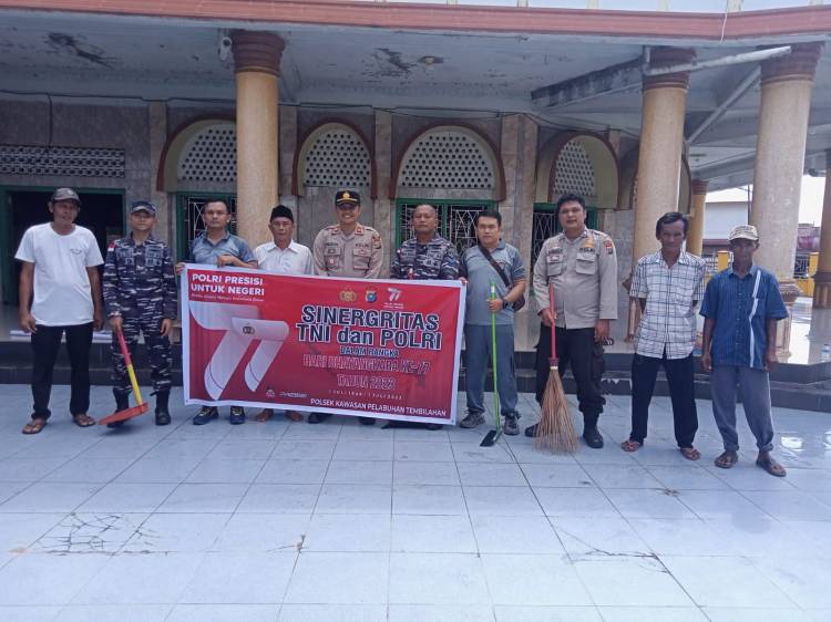 Polsek KSKP Bersama TNI Angkatan Laut Lakukan Gotong Royong Membersihkan Mesjid Al Ghulam Tembilahan