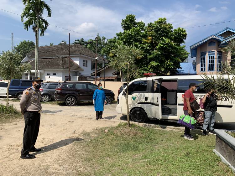 Polsek Limapuluh Bersama Tim Tracing, Antar Satu Keluarga Ke Fasilitas Isolasi LPMP Provinsi Riau