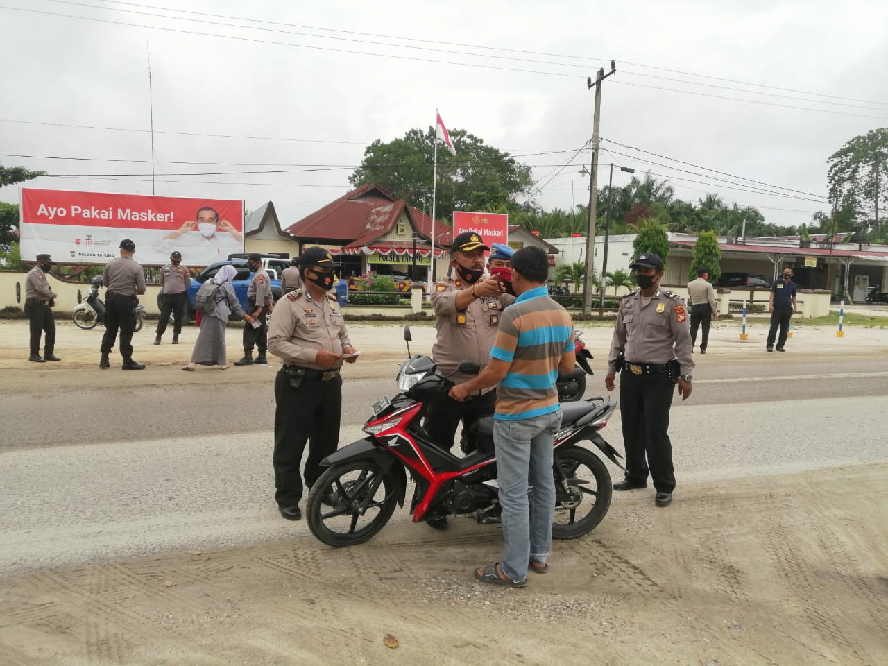 Jajaran Polsek Tapung Polres Kampar ikut berpartisipasi dengan membagikan 500 masker kepada masyarakat.