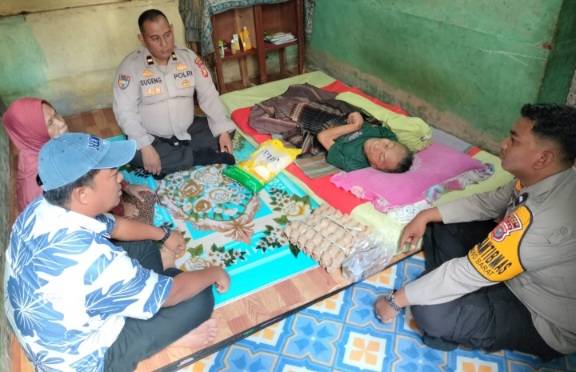 Polsek Tualang Beri Bantuan Paket Sembako Kepada Warga Alami Lumpuh di Perawang Barat