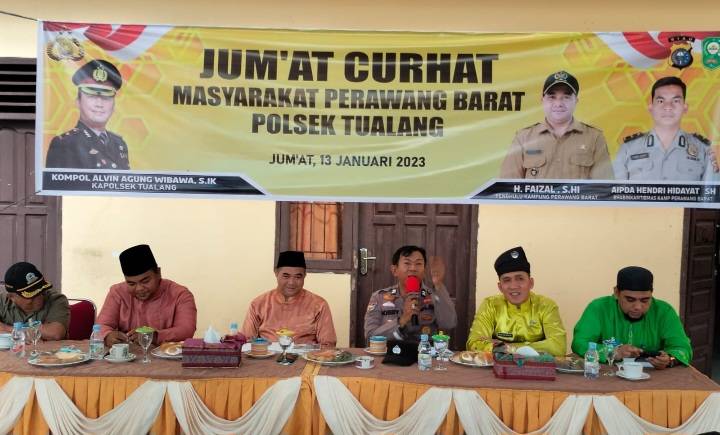 Kapolsek Tualang Kompol Alvin Agung Wibawa SIK melalui Panit Binmas Polsek Tualang Aiptu Robby SE pada giat Jumat Curhat.