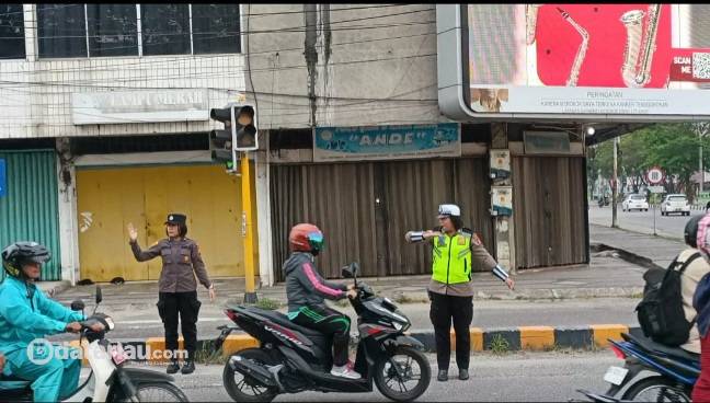 Polwan Polres Dumai Patroli di Lokasi Rawan Kemacetan Lalulintas