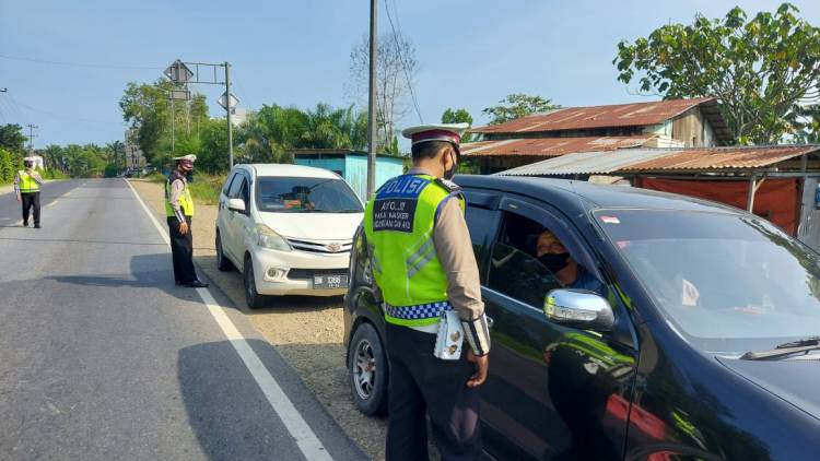 PPKM Level 3 Rokan Hilir, Polisi Lakukan Penyekatan di Perbatasan Riau-Sumut, 40 Unit Putar Balik
