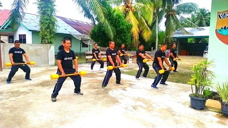 Prajurit TNI di Kabupaten Rokan Hulu Laksanakan Senam Barbel