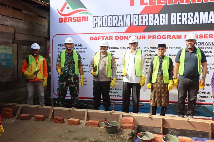 DUMAI, datariau.com - Launching program Berbagi Bersama Membangun Negeri (Berseri) Polres Dumai Polda Riau ditandai dengan peletakan batu pertama bedah rumah di Jalan Mesjid RT 005 Kelurahan Pelintung Kecamatan Medang Kampai, Sabtu (26/11/2022).