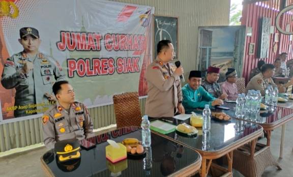 Kapolres Siak AKBP Asep Sujarwadi SIK MSi pada program Jumat Curhat di Kecamatan Tualang.