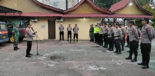 Kapolsek Tualang Kompol Arry Prasetyo SH MH pimpin apel pengamanan malam pergantian tahun baru 2024.