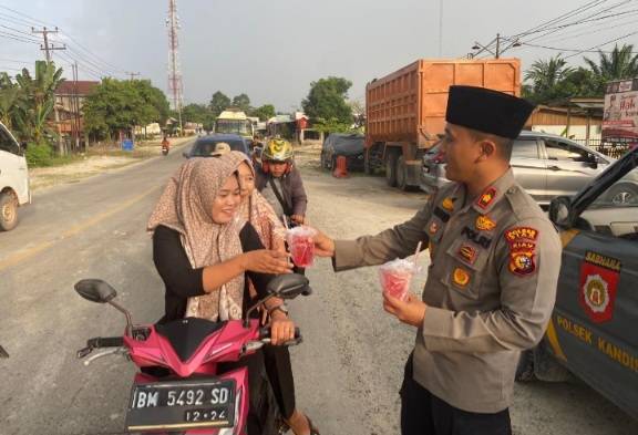 Ramadan Berkah, Polsek Kandis Bagikan Takjil Kepada Pengguna Jalan Raya