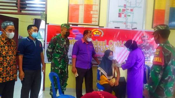 Terlihat, Camat Rambah Arie Gunadi SSTP hadir dalam kegiatan Serbuan Vaksinasi Kodim 0313/KPR.