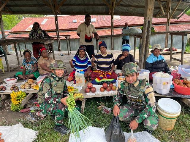 Roda Perekonomian Pasar Tradisional, Satgas Yonif 521/DY Hadir Dukung Kemajuan Masyarakat di Distrik Kelila