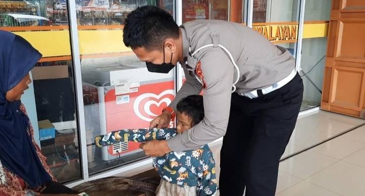Saat Patroli Personil Satlantas Polres Siak Datangi Ibu Dewi dan Anaknya