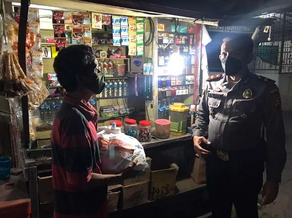 Sambil Sosialisasi PPKM, Polsek Sukajadi Bagikan Bansos Untuk Pedagang