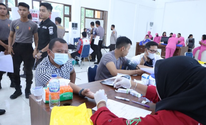 Sambut Hari Bhayangkara ke-77, Polres Siak Gelar Bhakti Sosial Kesehatan Donor Darah